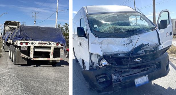 Un hombre terminó con una impresionante herida en la frente, luego de que estrelló la Urvan que conducía contra la plataforma de un tráiler, cuyo chofer invadió su camino.