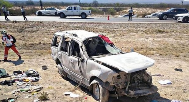 Un saldo mortal de cinco personas muertas y dos heridos es lo que dejó la volcadura de una camioneta en la Carretera 57 de la Carretera 57 Matehuala-Saltllo, en el municipio de Doctor Arroyo, Nuevo León.