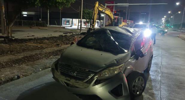Ilesa salió la conductora de un carrito Ford Fiesta 2013, ya que cuando circulaba por la avenida Reforma, pasando Lago de Chapala, se carga a la izquierda y pega contra el muro del camellón central para medio volcarse y luego quedar con sus llantas en el pavimento.