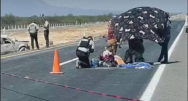Fue alrededor de las 12:30 horas, en la carretera 57 de Matehuala-Saltillo, cerca del municipio de Dr. Arroyo, Nuevo León, donde la camioneta Explorer color gris en la que viajaban varias personas de Nuevo Laredo y Laredo, Texas, volcó, dejando como saldo cinco fallecidos, entre ellos una bebé de 2 años.