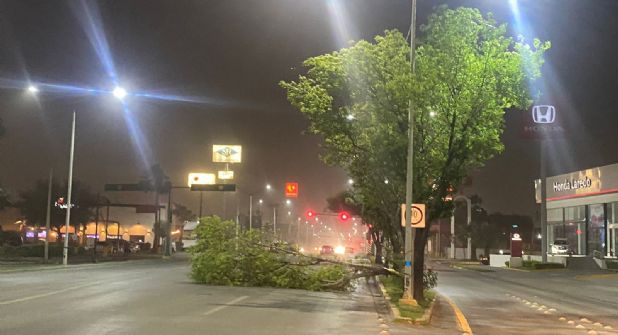 Se reportaron en algunas zonas de Nuevo Laredo árboles caídos, baja presión en el agua, caídas de bardas, daños menores en casas y vehículos; además de caídas en el servicio de electricidad y en el internet.