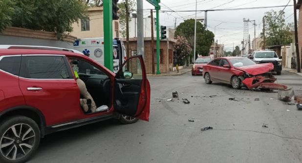 La maestra viajaba en una camioneta Nissan XTrail modelo 2020, circulando por la avenida Morelos de norte a sur y en la calle Washington, el chofer de un carro MG modelo 2022 se impacta contra ella y la hace dar un giro para quedar apuntando hacia el norte y subida a media banqueta.
