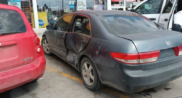 A pesar de ir acompañado de dos menores edad que llevaba en la parte trasera de su carro, el chofer de un Honda Accord le quiso ganar el cambio de luz a un semáforo y en el crucero de César López de Lara y Venezuela fue chocado por el chofer de una camioneta Nissan NP300.