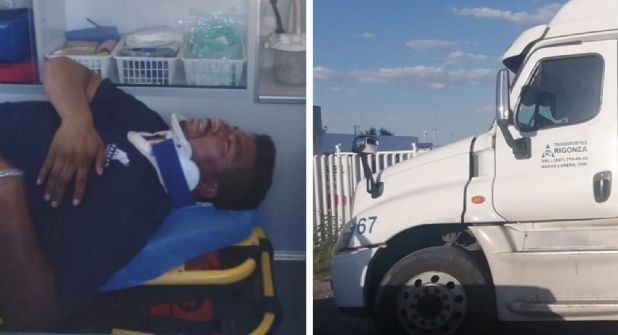 Silverio comentó que el otro trailero dio una vuelta muy cerrada y con la parte trasera de su contenedor lo embistió y casi lo aplastaba, dando giros como piruetas para caer al pavimento muy lastimado.