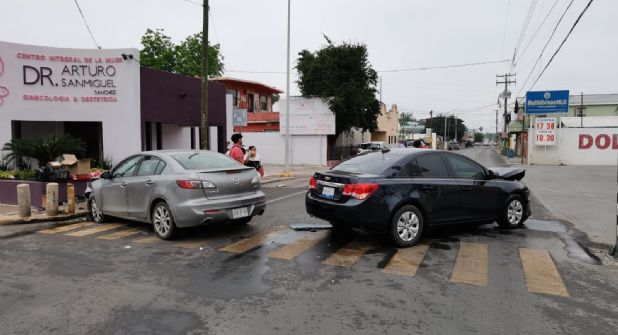 El percance ocurrió esta tarde en el crucero de Perú y la avenida Santos Degollado, en donde quedaron atravesados los vehículos involucrados, un Mazda 3 y un Chevrolet Cruze.