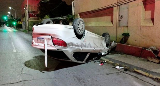 Al ignorar la luz roja del semáforo, un conductor con aliento alcohólico provocó un choque con volcadura en calles de la colonia Juárez, cuyo saldo fue de un hombre lesionado y daños materiales.