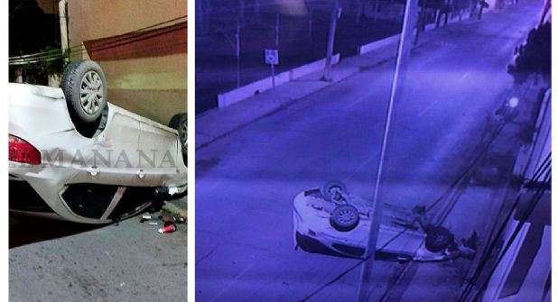 La camioneta termina impactada en el semáforo, mientras que el auto se impacta contra una jardinera del edificio del periódico El Mañana, para luego terminar volcado.