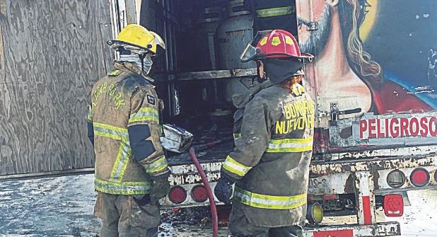 Los bomberos de Nuevo Laredo controlaron la situación, observando que el vehículo comercial llevaba seis cilindros con peso de 120 kilos y otros dos con capacidad de 50, todos ellos utilizados para el transporte de un químico denominado (Etilmercatano), no pasando las cosas a mayores desgracias, según el reporte del personal de bomberos de esta ciudad fronteriza.