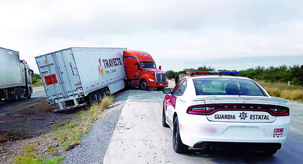 Un operador de tráiler resultó ileso pese a que se accidentó en el Libramiento Mex II, al poniente de Nuevo Laredo, por viajar presuntamente a exceso de velocidad.