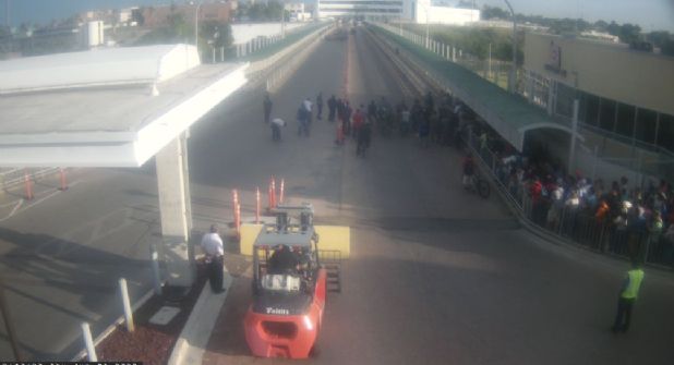 A través del sistema de cámaras del paso internacional se advirtió cómo el cuerpo del puente fue totalmente bloqueado por elementos del CBP y en pocos minutos un número grande de peatones y ciclistas se encontró varado.