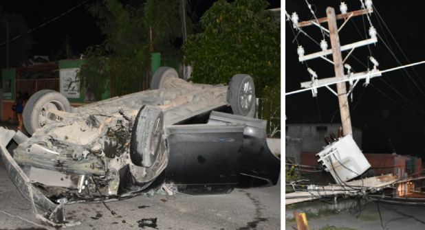 Por manejar en completo estado de ebriedad, el conductor de una Chevrolet Equinox se estrella contra un enorme poste de la CFE y después se vuelca, dejando sin energía eléctrica un gran sector de la colonia Hidalgo y dañando equipos de la Comapa.