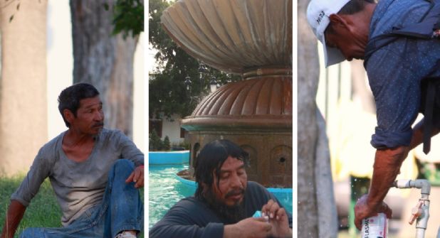 Bancas de las plazas sirvieron para que algunas personas tomaran un respiro, más las que contaban con árboles que les daban sombra; en tanto, el pasto también fue aprovechado para descansar pese a los 46 grados centígrados.