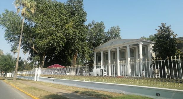 La majestuosa residencia, que abarca una manzana completa, se halla entre las calles Reynosa y Ocampo.