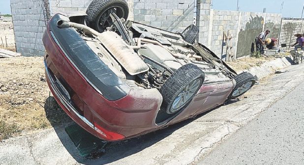 Un hombre sobrevivió a pesar de que volcó en su automóvil en calles del sur de la ciudad, por manejar a exceso de velocidad, arriesgando su vida y la de los demás.