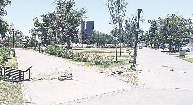 Tras no poder enderezar el rumbo, la persona subió con todo y vehículo a la explanada de la plaza y se llevó de encuentro una de las bancas y dañó también una lámpara, para después huir.
