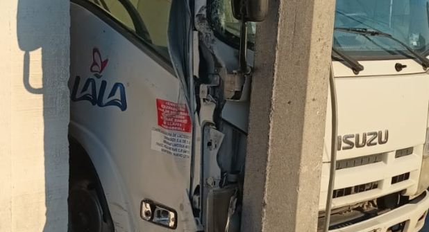 “Venía bajando el puente de la calle Venezuela y los frenos empezaron a fallar, por lo que empecé a utilizar el freno de mano y este no respondió, decidiendo cargarme hacia la banqueta y fui a pegar contra el poste”, declaro el chofer del vehículo comercial que en ese momento hablaba a sus oficinas reportando el accidente.