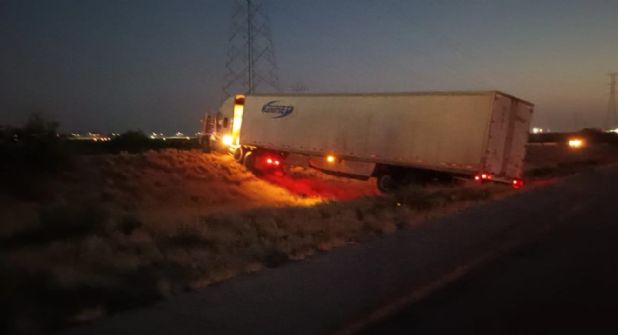 “Se me acabó la carretera”, declaró el chofer de un enorme tráiler que esta madrugada casi se mata al brincar de un carril a otro por el Libramiento Mex 2.