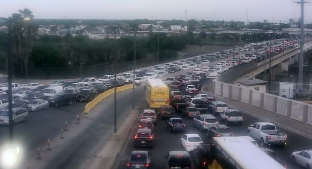 La fila del puente ha permanecido casi al 100% tanto en la plataforma como sobre el Bulevar Luis Donaldo Colosio, principalmente el fin de semana de usuarios que esperan entre 40 minutos, una hora o más para cruzar a Laredo, Texas.
