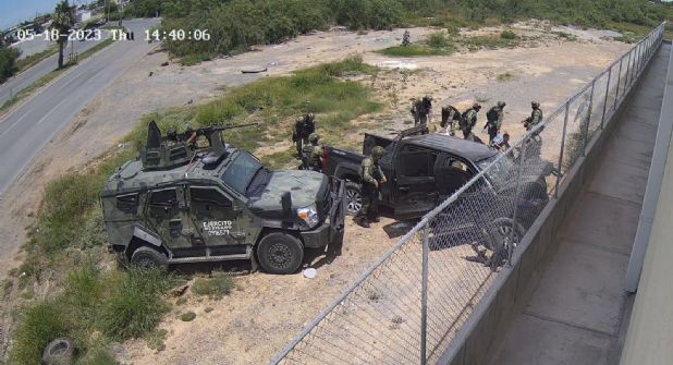 Era la parte final de un día complicado. A la hora de comer, militares habían empezado a perseguir la camioneta negra en la que iba su hijo, por el sur de Nuevo Laredo. Según el relato de algunos de los soldados, testimonios que este diario ha publicado esta semana, la persecución inició porque la camioneta negra, cuando los vio, aceleró y trató de huir. Otros señalan que escucharon “detonaciones” antes incluso de que empezara la persecución. Fuera como fuera, la persecución acabó minutos después, cuando la camioneta cruzó la mediana de la avenida Prolongación Monterrey y se empotró en el muro trasero del supermercado.