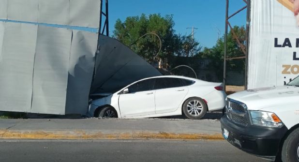 En la escena del choque el automóvil estaba prácticamente metido en el terreno donde se ubican las bases de los anuncios, con el motor encendido.