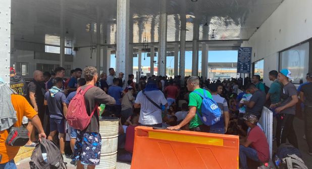 Un nutrido grupo de migrantes varados en Nuevo Laredo se aglomeraron en el Puente I de Nuevo Laredo-Laredo, Texas, ellos están desesperados, ya que tienen casi dos meses varados en esta ciudad fronteriza.