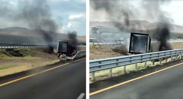 El tráiler, cuya identidad del conductor y la empresa propietaria no se logra apreciar en el video, quedó completamente envuelto en llamas, lo que generó una densa columna de humo negro que se elevaba en el cielo y podía ser vista a varios kilómetros de distancia.
