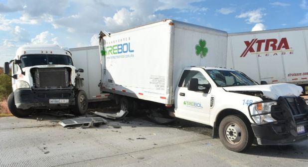 Cinco camiones de carga se vieron involucradas en un aparatoso accidente registrado el martes por la tarde en el Libramiento Mex 2, el cual dejó daños materiales y un operador lesionado.