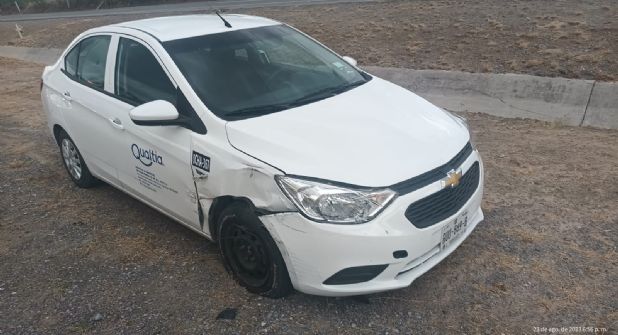 A bordo de un automóvil Chevrolet Aveo modelo 2022, propiedad de la empresa de alimentos Qualtia, Eduardo circulaba de norte a sur por el Bulevar Colosio, a la altura de las casas amarillas, no alcanzó a detenerse porque había fila, y chocó un auto.