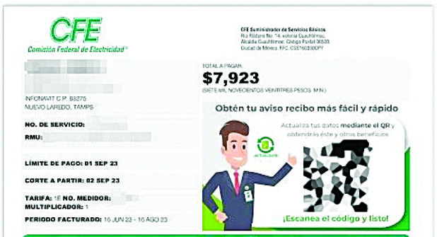 Al llegar el recibo de CFE se encontró con un cobro de 7 mil 923 pesos que deberá pagar en los próximos días.