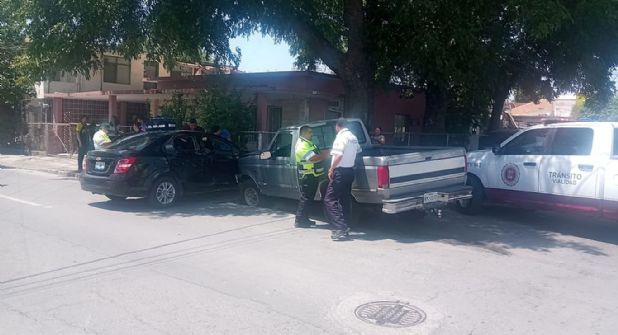 Según informes de la Dirección de Tránsito, la mujer conducía un automóvil Chevrolet Sonic modelo 2017 y circulaba de oriente a poniente por la calle Nuevo León.