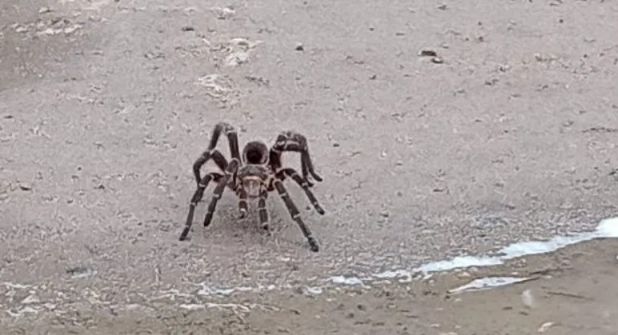 Una tarántula del tamaño de una mandarina fue vista caminando en una céntrica calle de Nuevo Laredo, tal vez a causa de las intensas temperaturas, en busca de cazar su cena o posiblemente regresando a su nido.