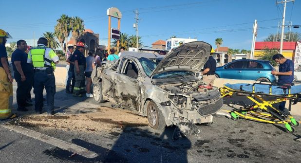 Tras el choque, el auto compacto se proyectó hacia la izquierda chocando brutalmente contra el muro de concreto que divide la Carretera Nacional, según se informó.