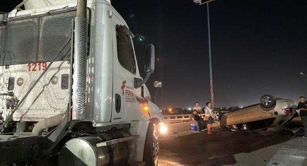 El accidente fue entre un tractor quinta rueda de conocida empresa transportista local y un automóvil Chevrolet Malibu, siendo este el que terminó volcado en medio de la carretera.