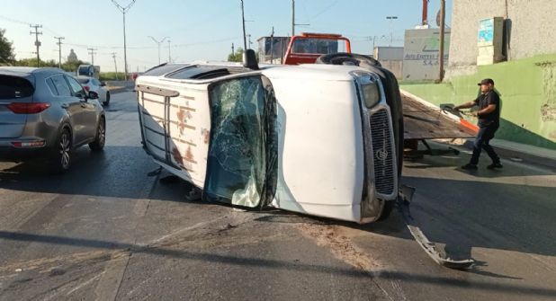 Dos personas lesionadas fue el saldo de la volcadura de una camioneta Mercury cuyo conductor argumento que otro vehículo lo invadió, provocando que se descontrolara, pegara contra el cordón de un camellón para después volcarse aparatosamente.