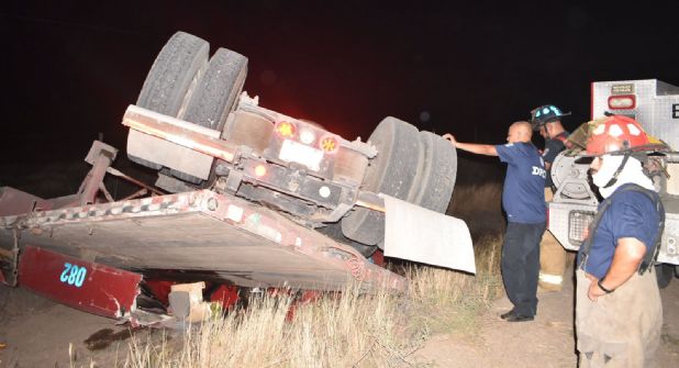 Un trailero resultó lesionado al volcar en la Carretera a Anáhuac, a unos 20 kilómetros de Nuevo Laredo, luego de perder el control presuntamente por viajar a exceso de velocidad.