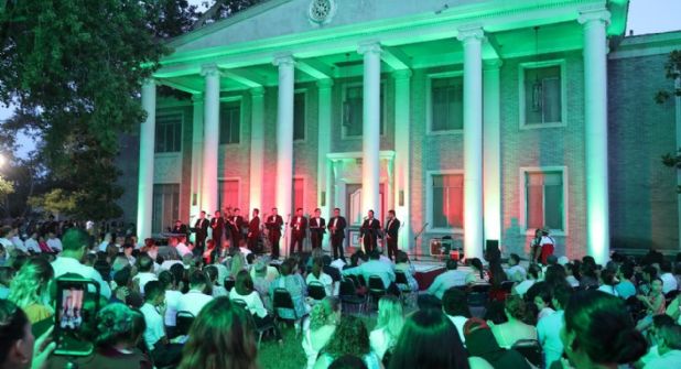 La noche empezó con la apertura espectacular por parte de “Los Diez Tenores Tamaulipecos”, quienes lograron que todas las sillas en los jardines de la mansión fueran ocupadas, incluso hubo quienes se sentaron en el pasto y escalones, o permanecieron de pie.
