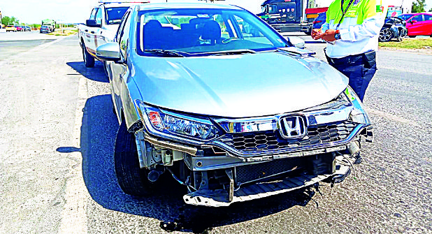 Al salir de una agencia automotriz e incorporarse sin precaución al Bulevar Colosio, un hombre de la tercera edad que conducía un automóvil provocó un fuerte choque que dejó daños muy cuantiosos.