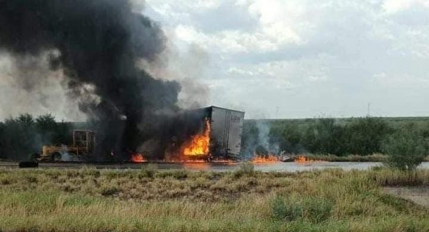 En la carretera, los automovilistas que pasaban del otro lado informaron sobre los hechos y compartieron imágenes y video; del tráiler salían enormes columnas de humo, mientras el fuego no cesaba.