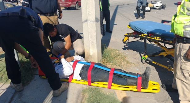 Un motociclista resultó lesionado al impactarse contra una camioneta, cuyo chofer invadió la vía de preferencia en calles de la colonia Valles de Anáhuac, en la zona poniente de Nuevo Laredo.