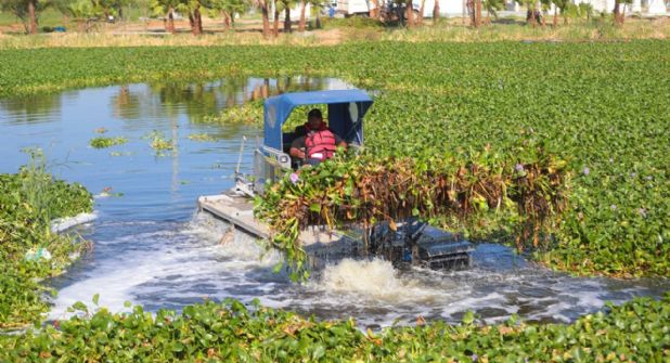 Retirarán más de 30 mil toneladas de lirio en El Laguito, como parte del Plan de Rescate Ambiental, al utilizar un anfibio recolector que ha comenzado los trabajos desde hace dos meses.