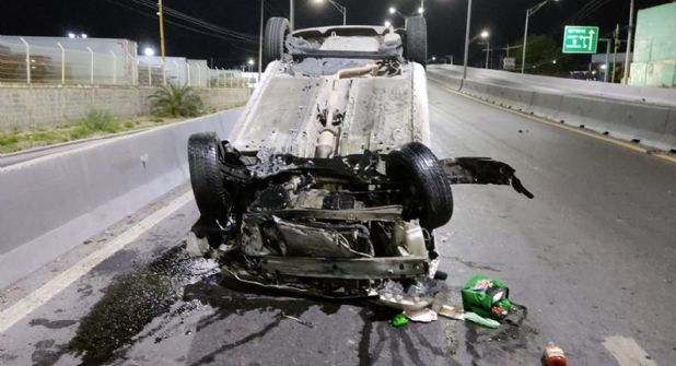 El vehículo abandonado era un Nissan Versa modelo 2012, el cual quedó severamente dañado y con las llantas hacia arriba tras el accidente, ocurrido la madrugada del jueves.