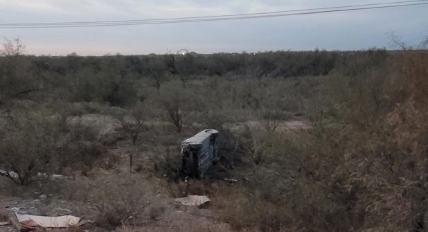 El auto fue a dar lejos de la cinta asfáltica y luego de rodar sobre su eje varias veces, quedó de costado entre los arbustos y la alta maleza del lugar, al noroeste de Laredo, en un paraje entre los puentes internacionales Del Comercio Mundial y Solidaridad.