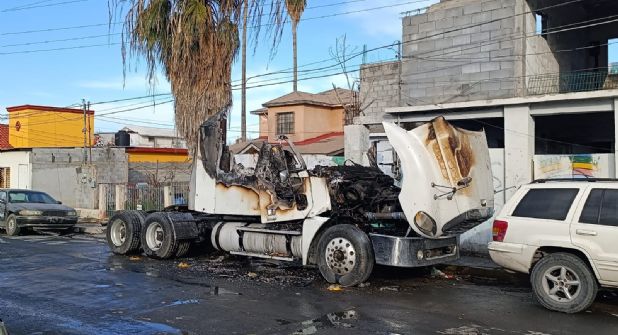 Tremendo susto fue el que se llevaron los vecinos de la colonia Hidalgo, luego de que un tráiler fuera consumido casi en su totalidad en un taller mecánico ubicado por las calles Plutarco Elías Calles y Doctor Mier.