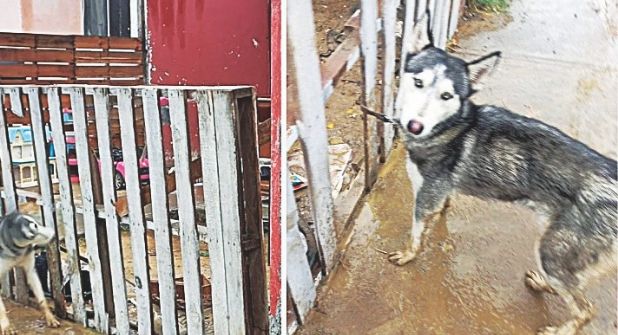 Amarrado del cuello con una cuerda muy corta, de apenas unos centímetros, bajo la lluvia y con una temperatura que alcanzaba los 7 grados centígrados, estaba un perro de raza husky el domingo pasado, situación que fue denunciada a través de redes sociales y ante las autoridades de Medio Ambiente y Cambio Climático, lo que resultó en dos personas sancionadas económicamente.