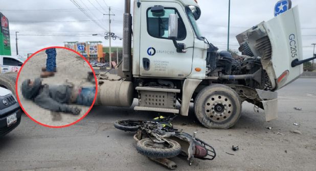 El trailero circulaba de sur a norte por los carriles centrales de la vía y en la calle Colinas del Sur trató de girar a la derecha, invadiendo el camino del motociclista que lo chocó.