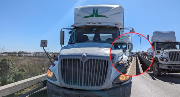 Justo en el puente de dicha colonia, el trailero trató de cambiar hacia el carril derecho, pero no vio que en este iba un Nissan Versa modelo 2015 y lo chocó.