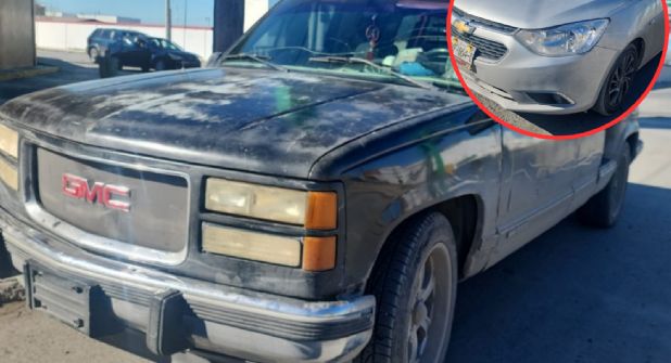 Jorge Alfredo, de 64 años, manejaba una camioneta GMC Sierra de poniente a oriente sobre la calle Iturbide. Al llegar al semáforo, no se percató de que el auto que iba delante de él, un Chevrolet Aveo 2018, conducido por Jesús Noé, de 20 años, se había detenido por la luz roja.