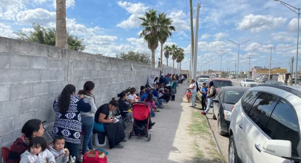 Padres y madres de familia empezaron a hacer filas en diferentes secundarias de Nuevo Laredo para asegurar una ficha de inscripción para sus hijos en alguna de las escuelas.