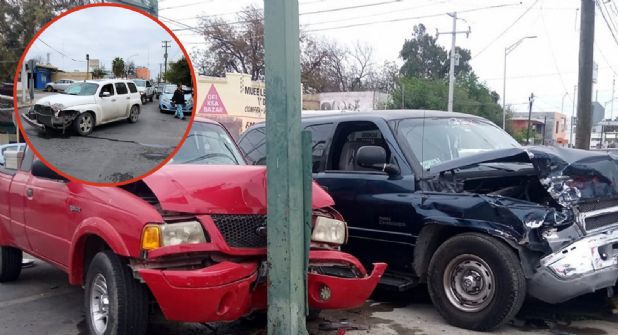 Tres vehículos se vieron involucrados en un aparatoso accidente registrado en un crucero de la colonia Guerrero, provocado por el conductor de una camioneta que ignoró la luz roja del semáforo.