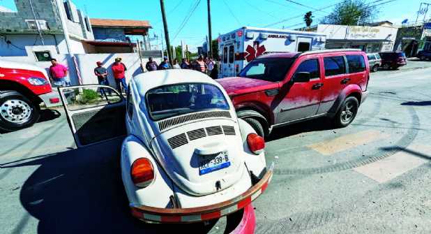 Una mujer lesionada y cuantiosos daños materiales, fue el saldo que dejó un aparatoso choque entre una camioneta y un “vocho” registrado en la colonia Mirador, provocado por un hombre que conducía en estado de ebriedad y que no respetó una señal de alto.